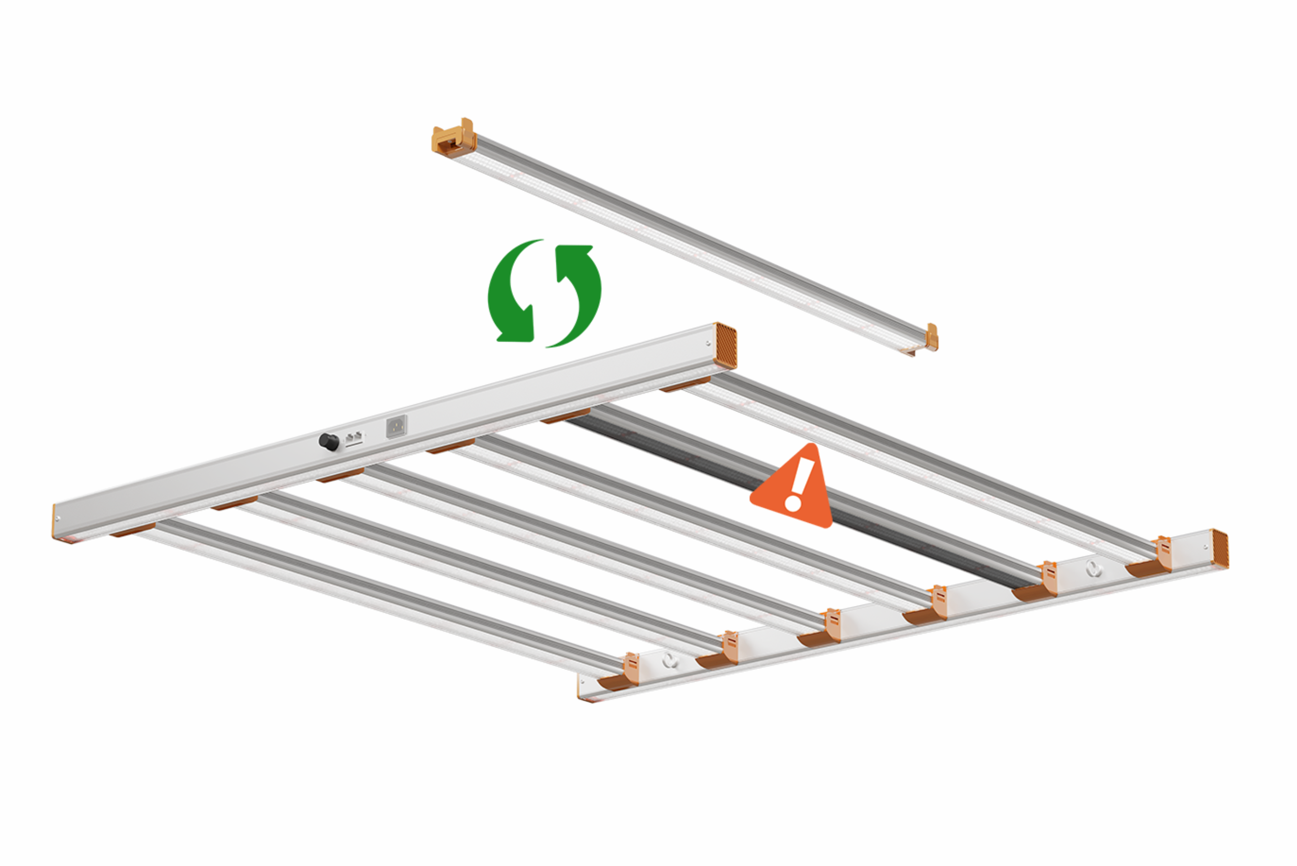 No tools, no wiring hassle. “Push. Lock. Grow.” No tools, no wiring hassle.